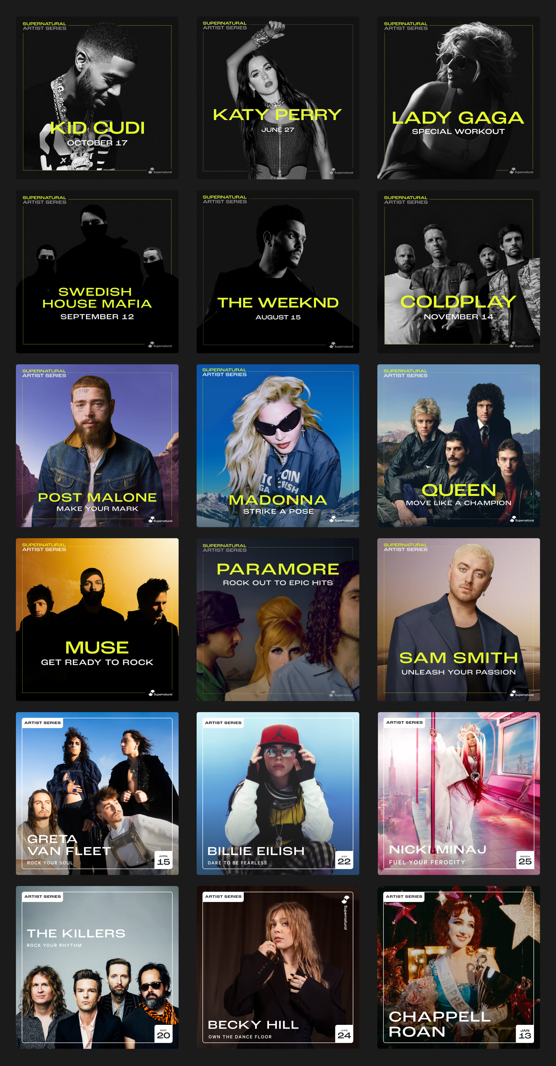 Supernatural's Artist Series needed a visual system that could scale — monthly releases, artists around the globe, a premium product experience that had outgrown its original aesthetic.